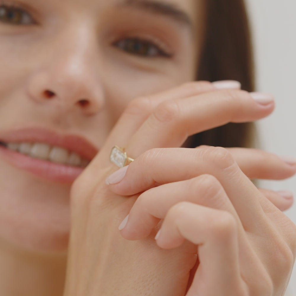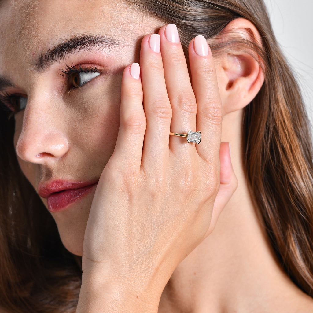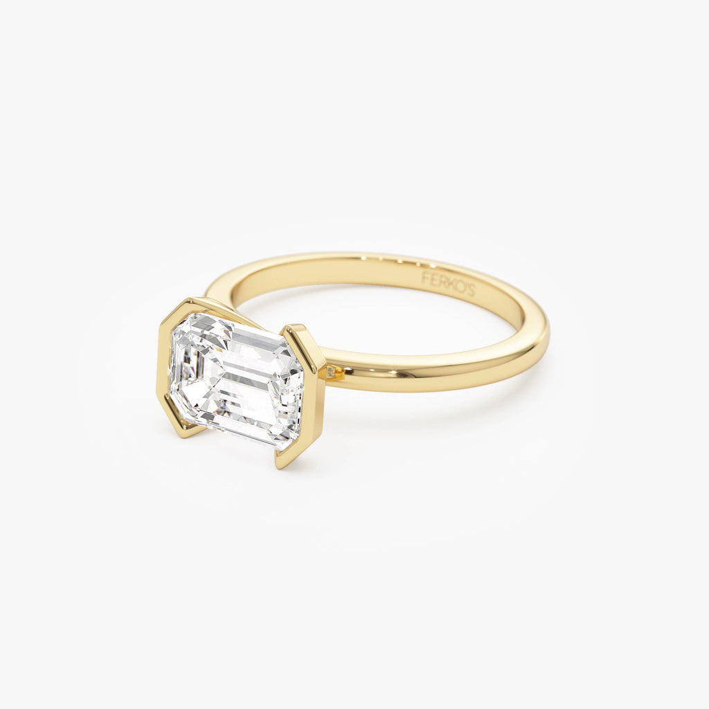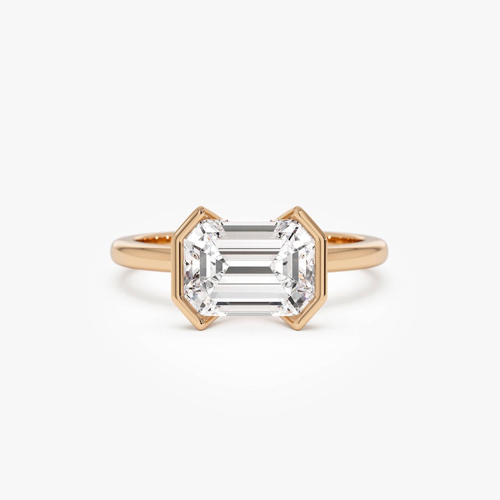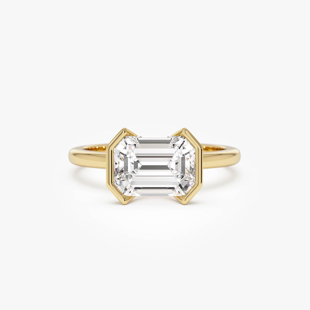 2.00 ctw 14K Half Bezel East-West Emerald Cut Lab Grown Engagement Ring - Amelia