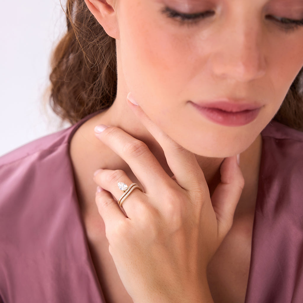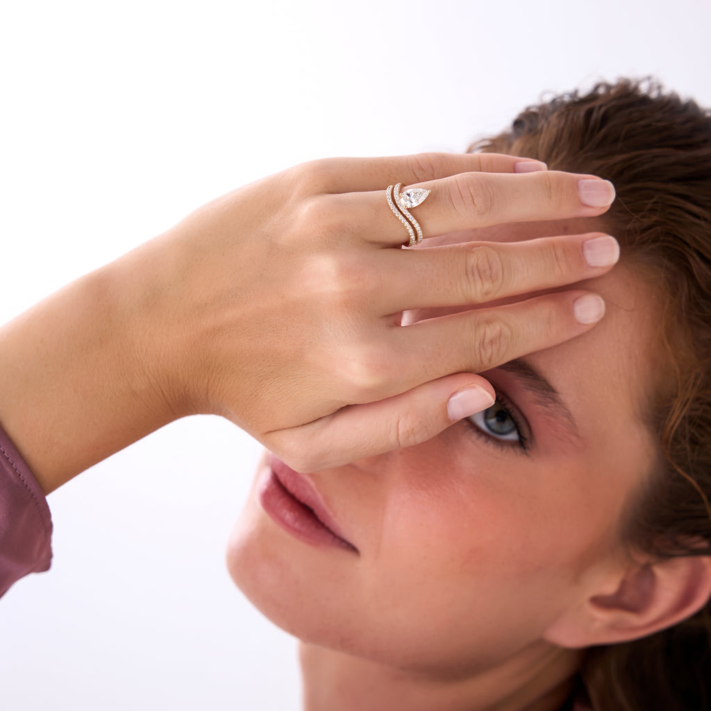 1.35 Ctw 14k Pear Shaped Lab Grown Twisted Pave Band Diamond Engagement Ring - Ivana