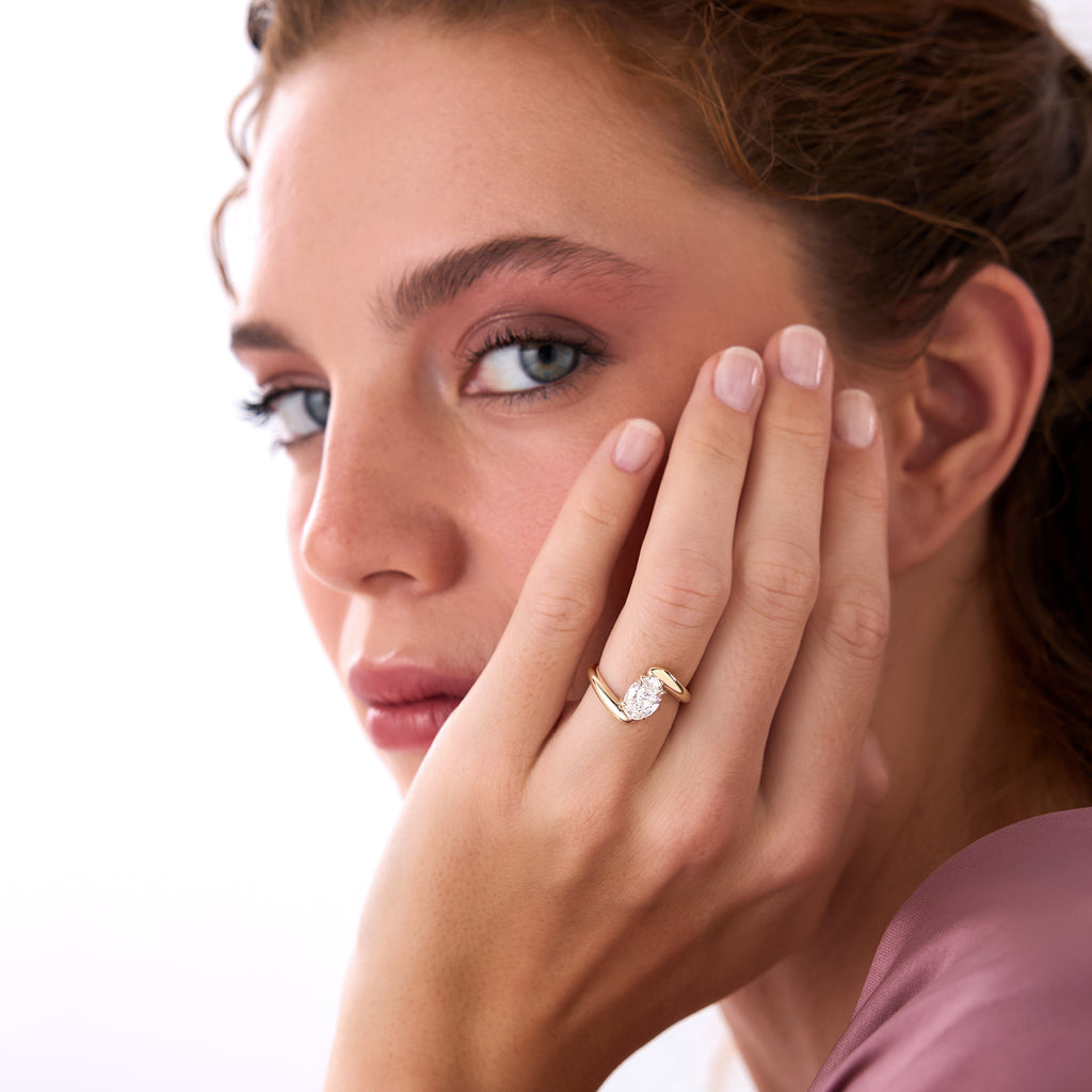 1.50 Ctw 14k Lab Grown Oval Shaped Diamond Bypass Ring - Flavia