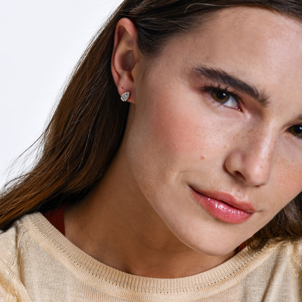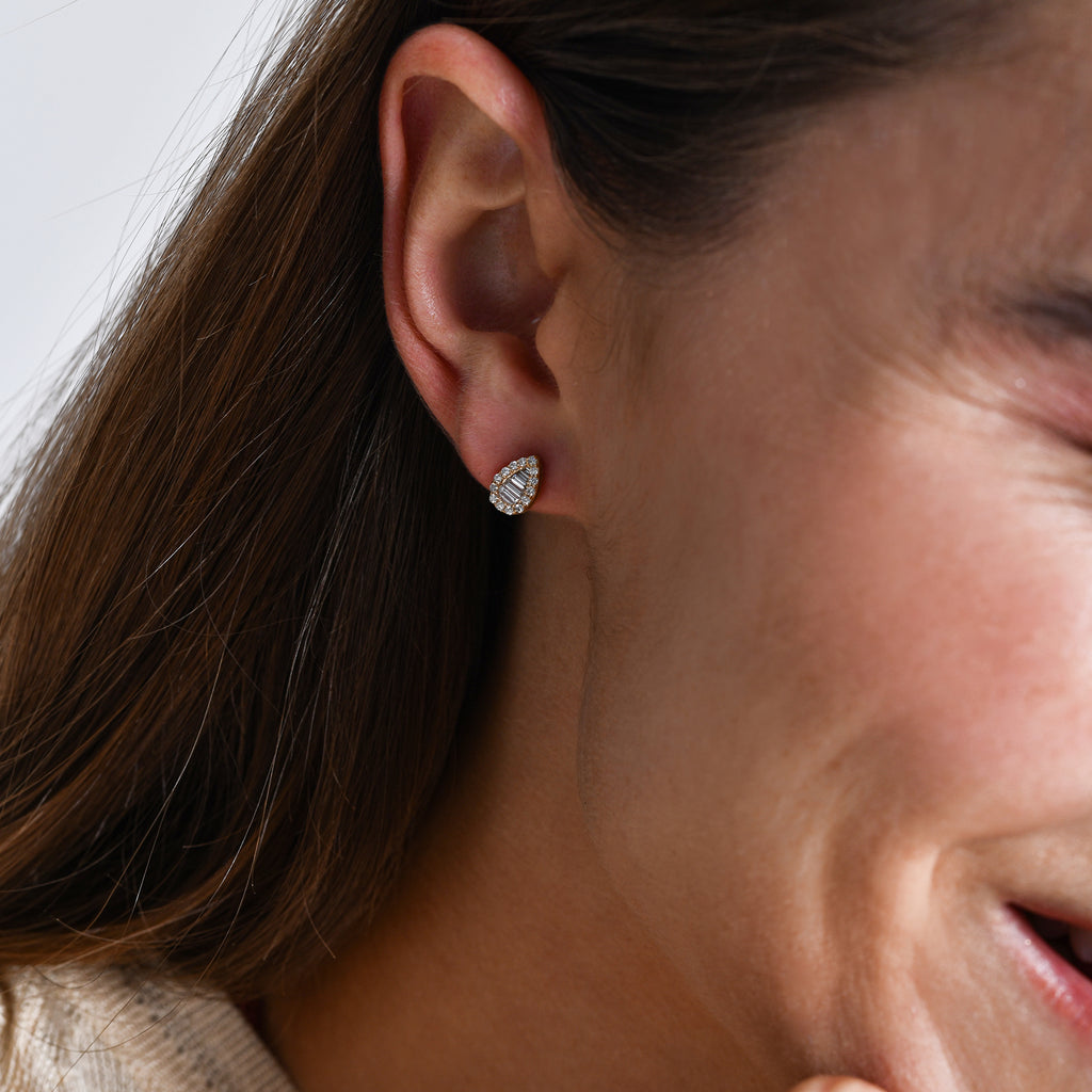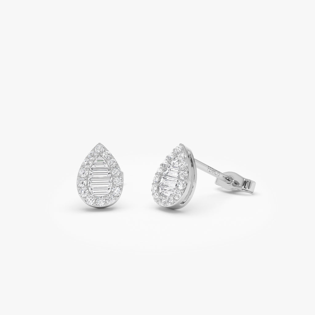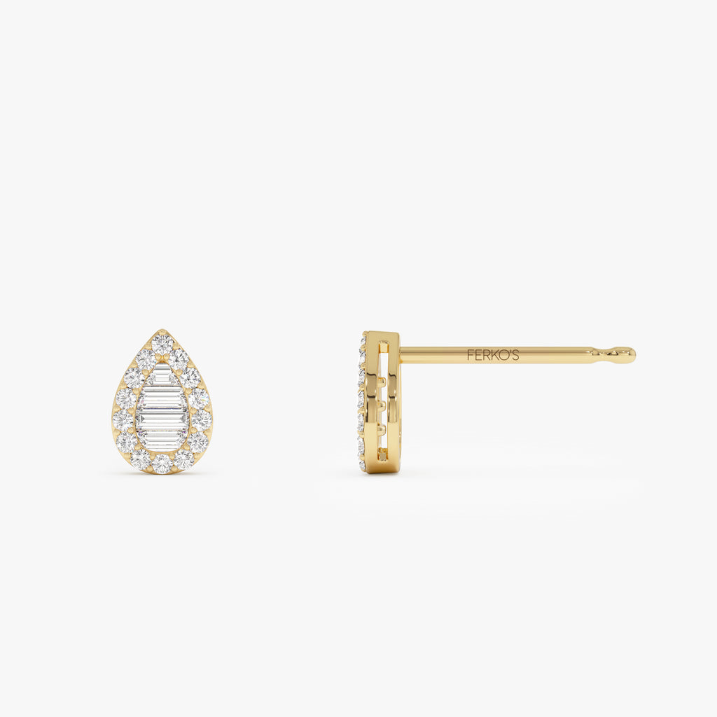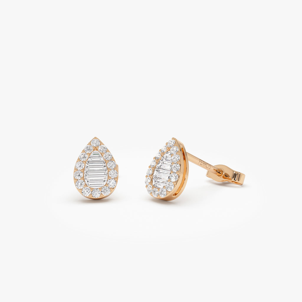 14k Baguette and Round Diamond Pear Studs
