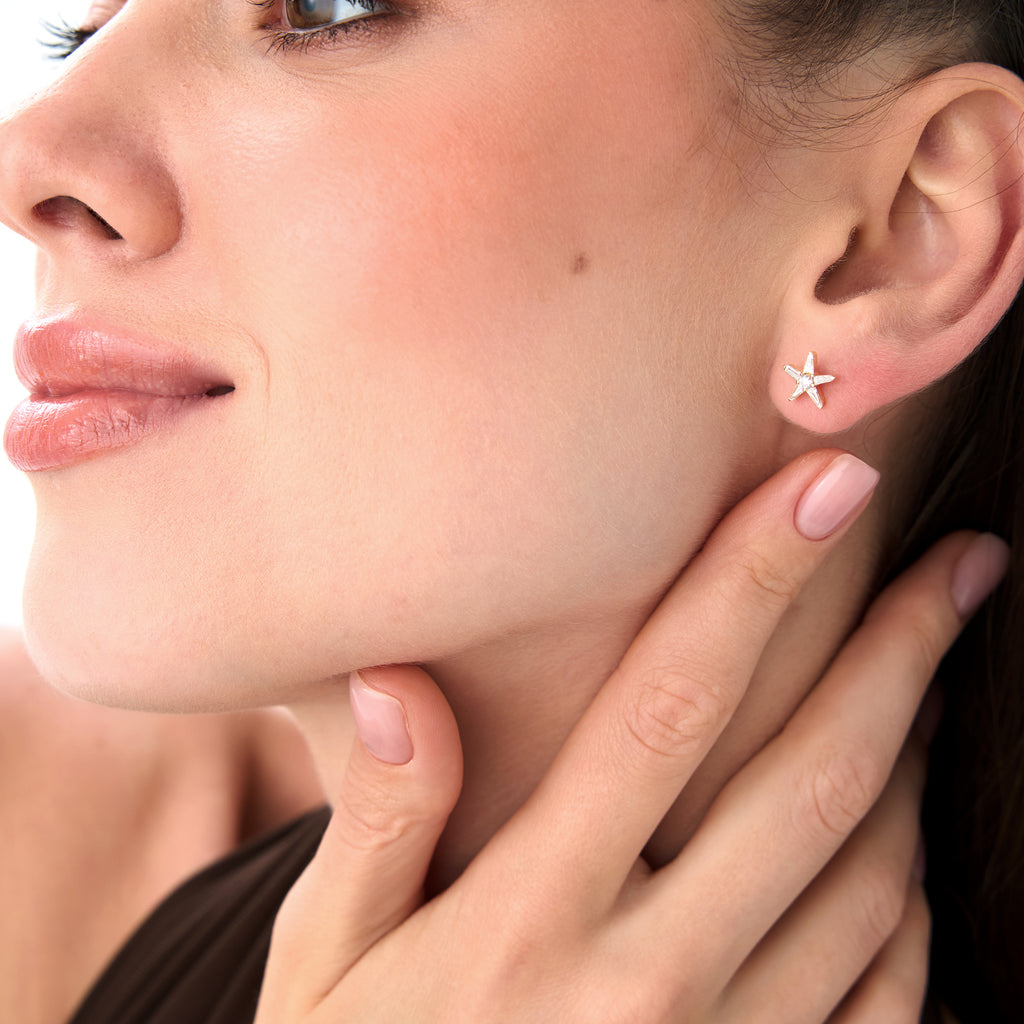 14k Baguette Diamond Star Earrings