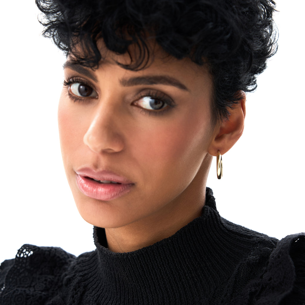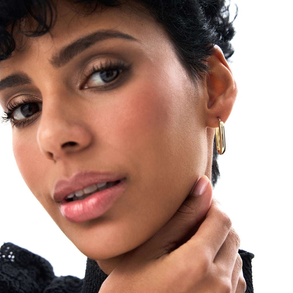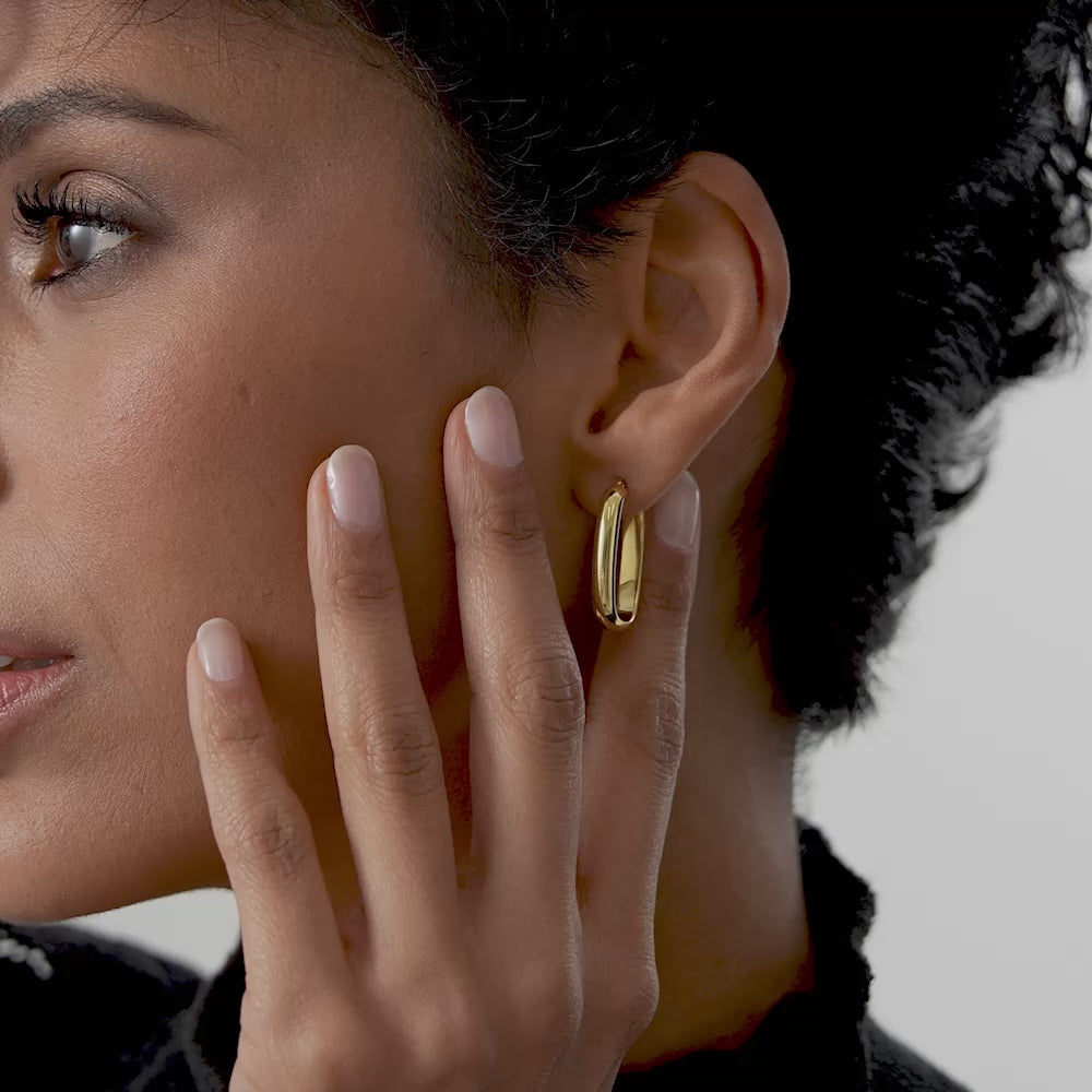 14K Gold Oval Dome Hoop Earrings