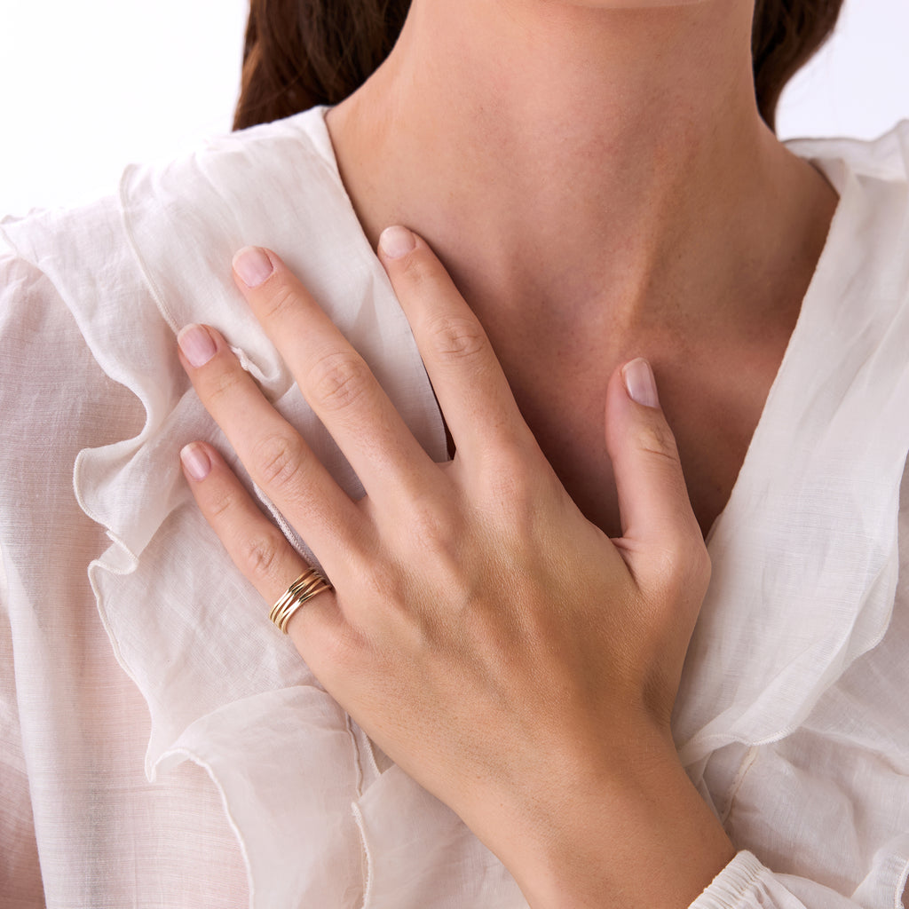 Rings with open bands, like our wrap rings, are slightly adjustable. You will be able to pull the ring apart a touch to adjust the fit, but it only gives you a half size or so before it starts to affect the look of the ring.
