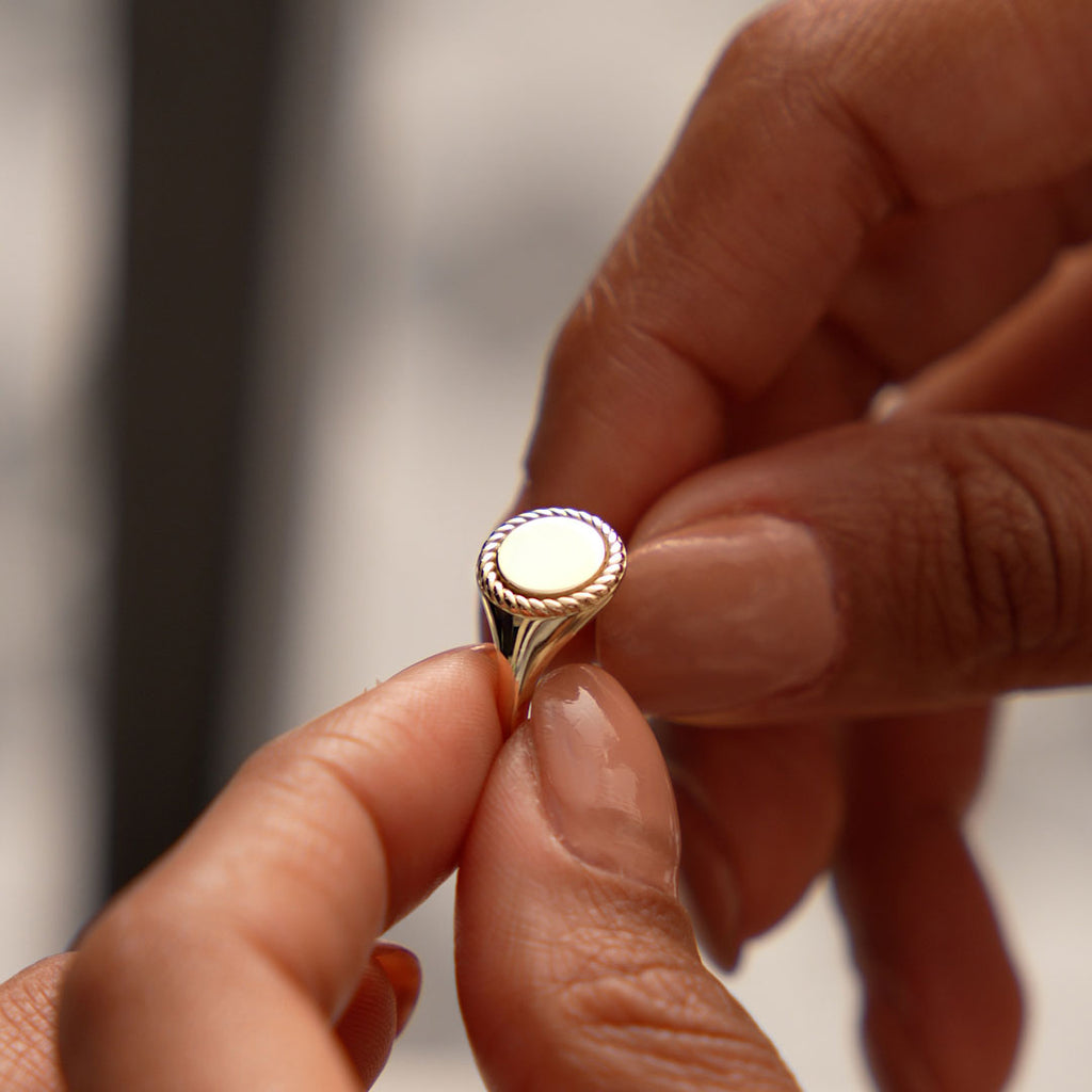 Wider bands (compared to a dainty stacker band) have less “give” for slipping over your knuckle, so you may need to increase the ring size. Consider ordering a half size larger than you usually would for bands 2mm or thicker.