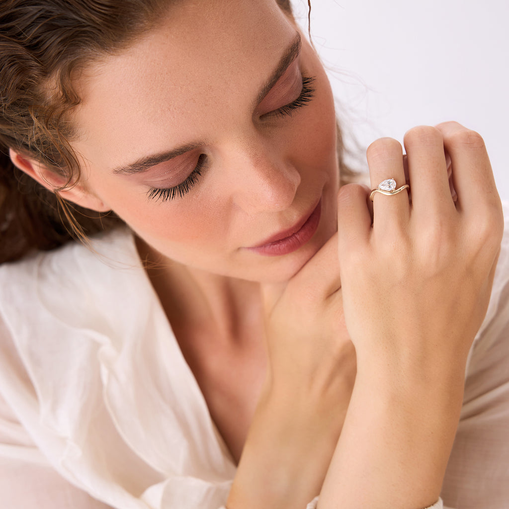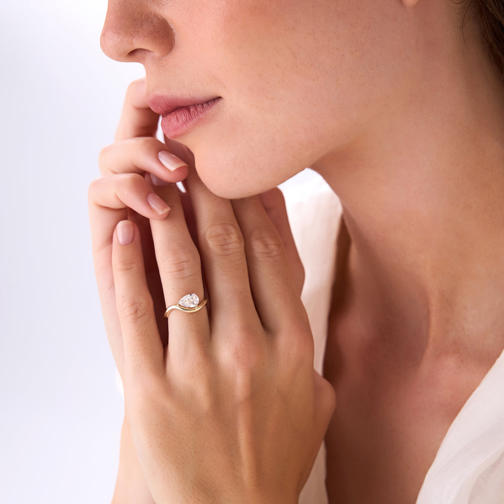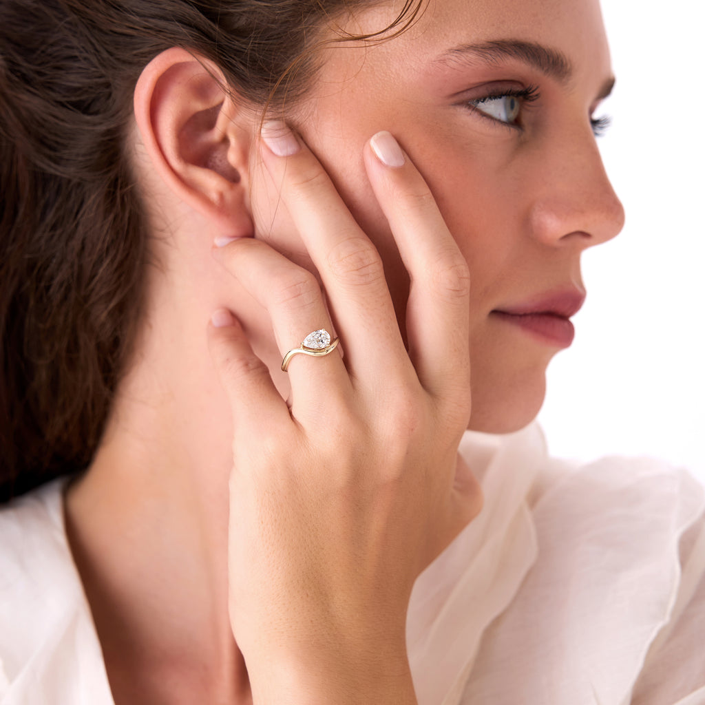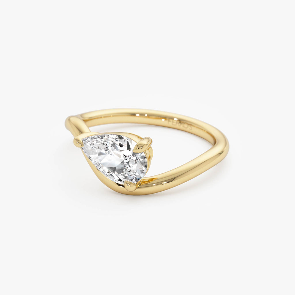 1ct Pear Shaped Lab Grown Contemporary Diamond Engagement Ring - Kleio