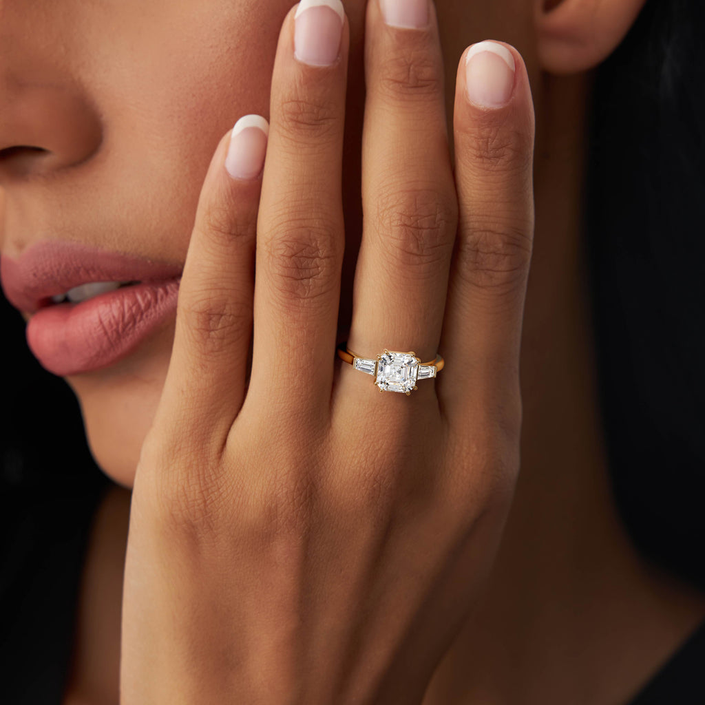 2.35 Ctw 14k lab Grown Asscher Cut Three Stone Enagement Ring - Nina
