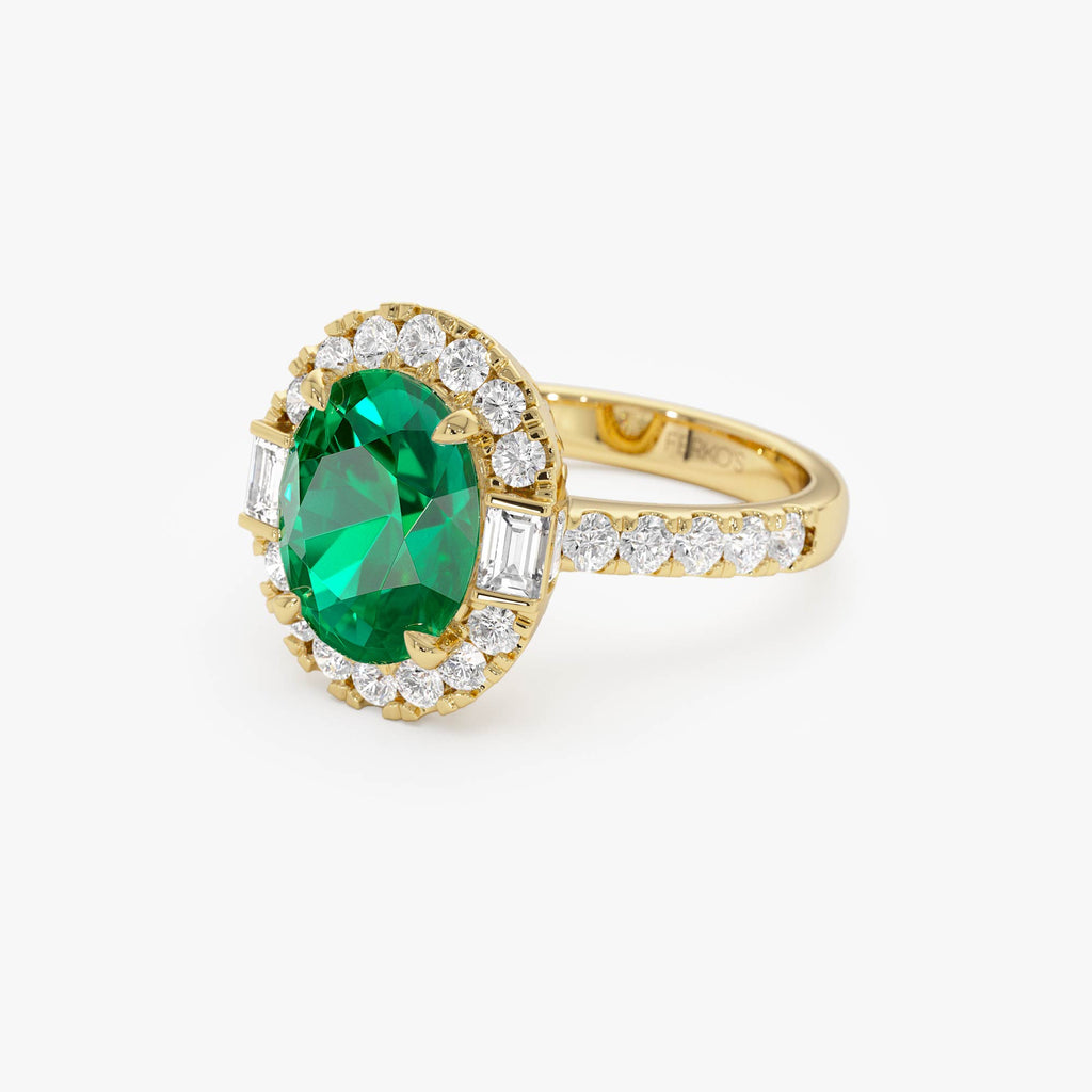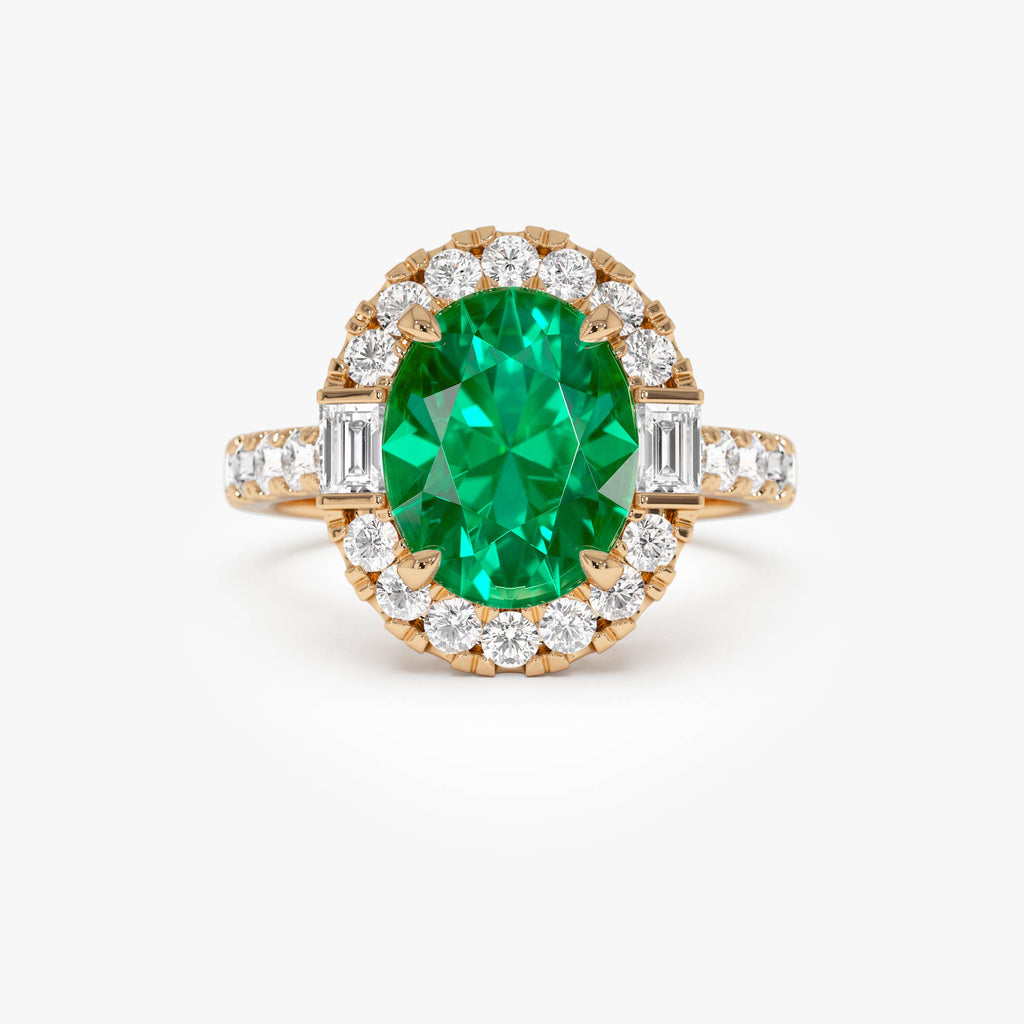 4.20 Ctw 14k Oval Shape Lab Grown Colombian Emerald and Diamond Halo Engagement Ring - Alma